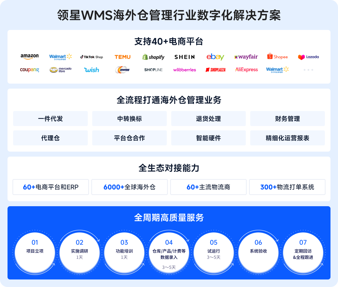 领星WMS以数智化驱动为核心,全方位赋能跨境企业,助力海外仓实现智能化、生态化管理的全链路升级,实现多方价值共赢。