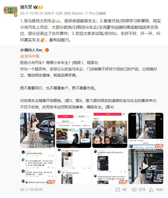 事件发酵之后,评论区直接炸了,最有意思的是一群小米、宝马双持车主站出来发声。