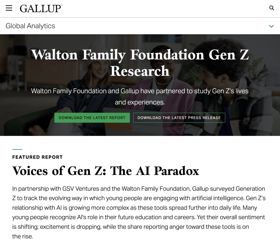 Gallup 的研究最后提到了一句话,大意是 Z 世代并没有在拒绝 AI,他们只是在重新评估 AI 在自己生活中的角色。