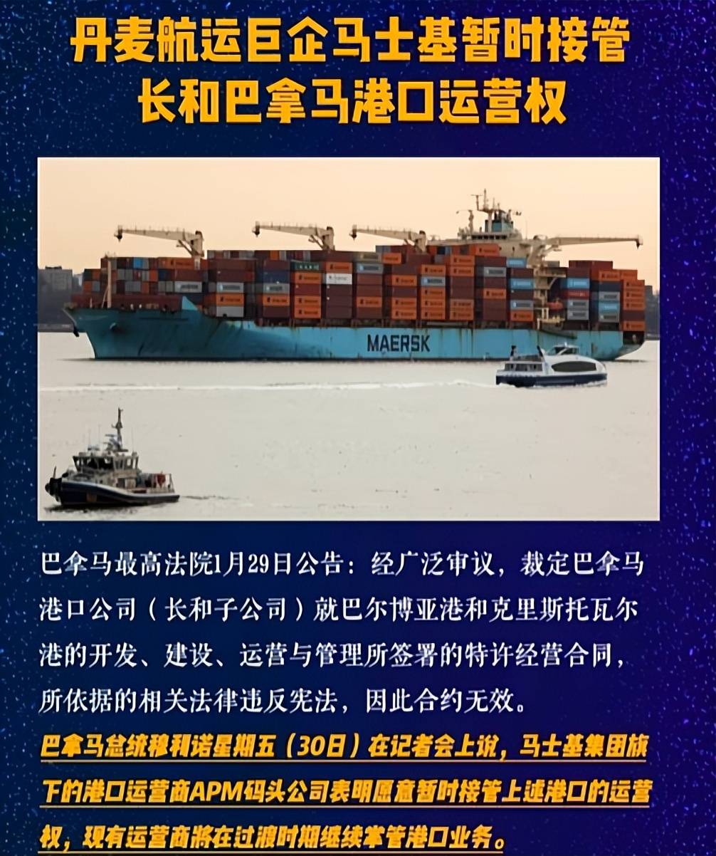 随之而来的,是巴拿马当地律师提起诉讼,指控长和集团拖欠特许使用费与税款,并声称该合同让巴方损失超过10亿美元税收。然而,这些指控显然站不住脚,因为此前的多项核查早已证明长和集团一直合规运营,所谓的财务违规不过是某些方面对长和发难的借口。 终于,2026年1月29日,巴拿马最高法院作出终审裁决,声称2021年续签合约未进行公开竞标程序,合同条款违宪。而更令人震惊的是,这份裁决不仅没有按照法定程序正式送达长和集团,还使用了2024年才生效的行政细则来推翻2021年签订的合约,完全违背了法不溯及既往的基本法治原则。 更让人愤怒的是,长和集团刚刚提出抗议,巴拿马政府便火速宣布与马士基达成协议,由后者临时接管港口。虽然巴拿马政府口头上说是依法裁决,但这一切看起来分明是早有预谋的抢港大戏。
