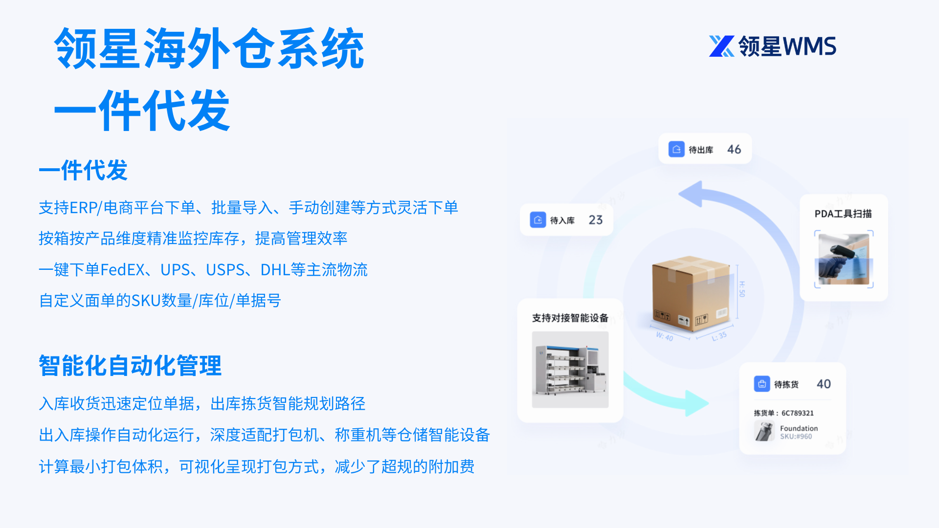 在一件代发的全流程中,海外仓系统的价值是非常大的,海外仓在保证卖家的货物准时无误的交给买家的同时,也需要保证自身的库存,利润和一些附加服务上面的投入产出比和准确度。需要达到这一目的,海外仓需要一套智能化,数字化的海外仓系统,比如像领星的海外仓系统(领星WMS),拥有WMS(仓库管理系统)、OMS(订单管理系统)、OMP(领星海外仓系统运营财务端) 等原生打通的系统,所以无论是站在海外仓工作人员还是卖家的角度来说,海外仓管理系统是非常重要的。接下来我们直入话题,看看一件代发服务范围、经常遇到的问题以及举例领星海外仓系统在一件代发过程中的作用和解决方案: