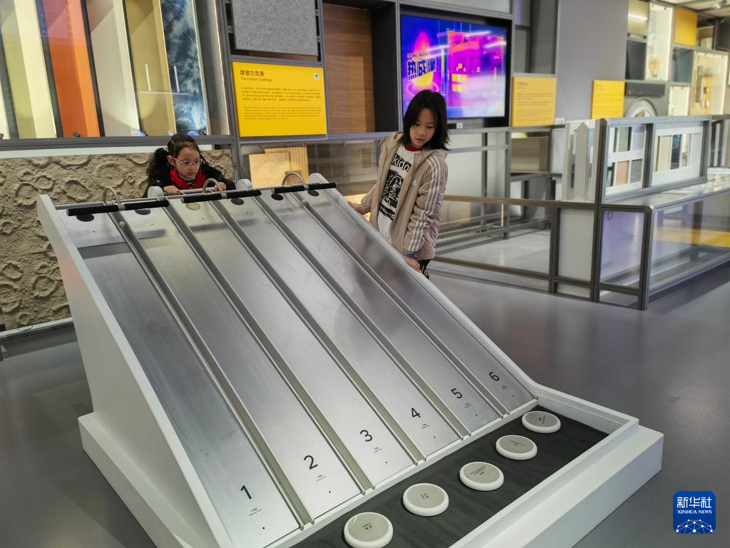 2月17日,观众在“材料魔方”展区通过互动实验了解不同材料的摩擦力。新华社记者 陈爱平 摄